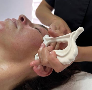 • Masaje en cervicales con piedra Gua Sha, que libera tensiones, activa la circulación y favorece el drenaje linfático